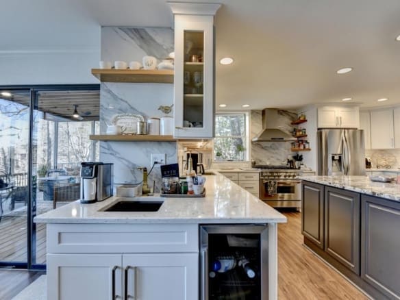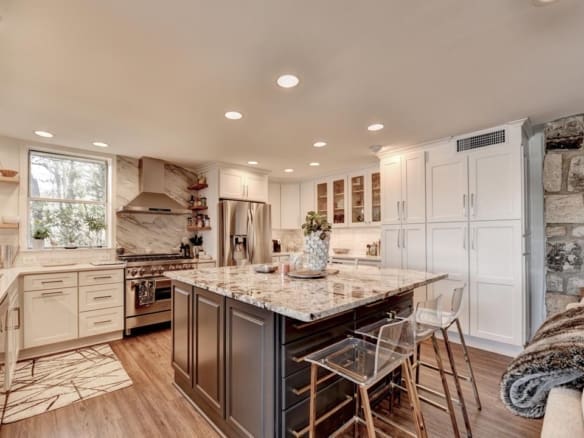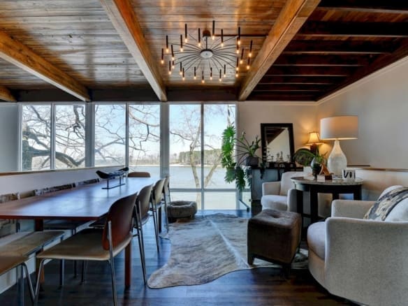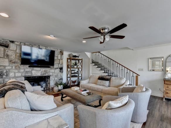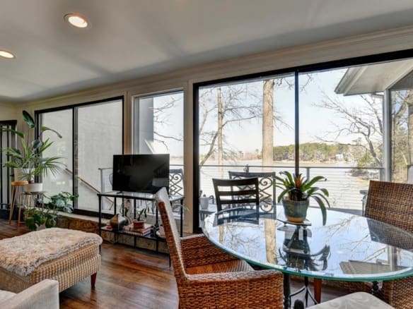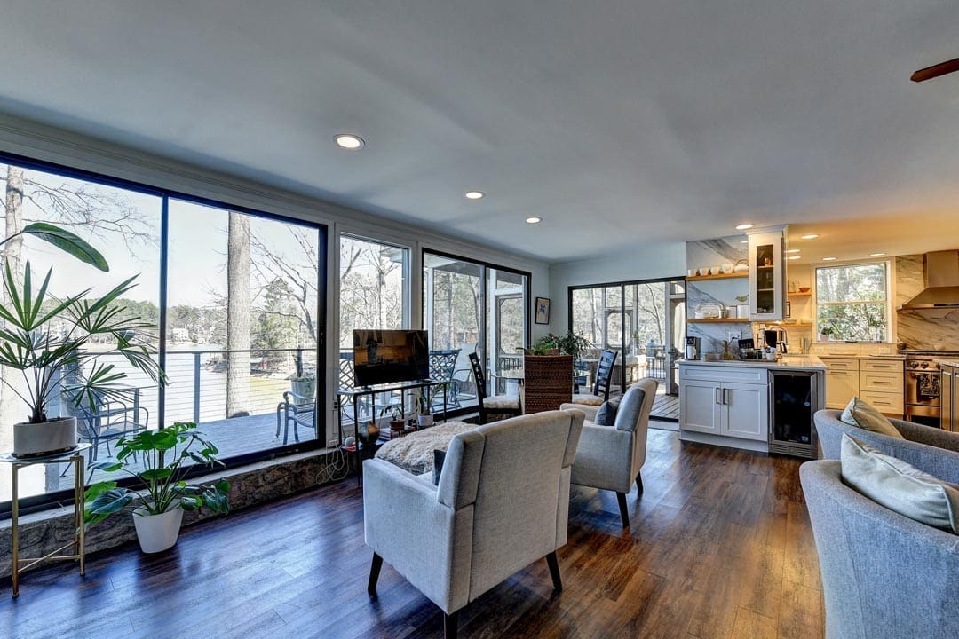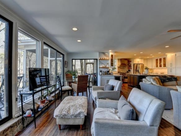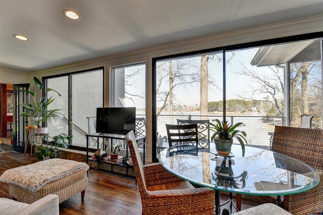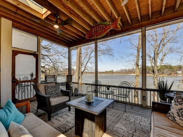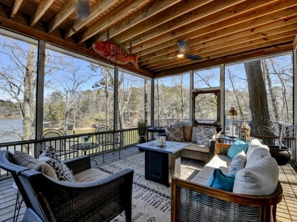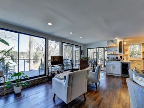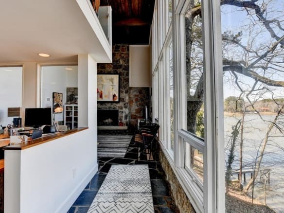 Premier Views on Berkeley Lake, directly across from the beach on the main portion of the lake for fantastic sunsets, the annual fireworks and the deepest part of the lake! You feel like you are in a tree house. Enjoy the purple martins, bald eagles, blue heron and so many more who make Berkeley Lake their nest! Home has been updated from top to bottom and sf added via a loft area, perfect for a floating dining area in the stars. Additionally, a massive primary closet has been added. The Primary bedroom suite, located on its own wing off the main entry area affords extreme privacy while offering the best views in the house through floor to ceiling windows. The brand new primary bath features a soaking tub providing both air and water jets, dual vanities and an oversized shower, all finished in stone and tile to bring nature within. The newly created primary closet is custom designed by the owner/contractor with storage it’s best feature. The Primary plus two other bedrooms and full bath are on the main level, the staircase at entry leads down to the entertaining level for easier access to the lake. Multiple outdoor areas including two decks, massive screened-in porch, partially covered turf area with fire pit, another fire pit adjacent to single slip boat dock and large dock area for additional enjoyment. Three interior fireplaces makes for ambiance inside and out. The kitchen is such a joy to entertain in. The cook has great space to work and also entertain a crowd of guests at the huge center island set up for seating on two sides. Nothing was spared in this revamped kitchen. Top-of-the-line appliances, fantastic prep areas, coffee bar, storage everywhere and all of this while looking through the windows and screened porch at the best views on Berkeley Lake. This home is at the curve where the channel meets the big part of the lake and enjoys deep views of both. Optional HOA for use of the lake, beach, 2 pavilions with grills, smokers, fire pits and so many activities for families, adults and kiddos activities including kids fishing lessons and beach camp outs-THIS is the community where memories are made! Pontoon boat can stay and has a HONDA 9.9HP Outboard motor Boat dock has custom lighting underneath to create a year round aquarium every evening and LED lights that use remote to light up the dock as you return from an evening boat ride. No reason to go on vacation again-you can live in PARADISE! The left side of the home including the master suiite and great room was added to the structure in 1970. The office and dining area above was completed during current owner’s ownership!