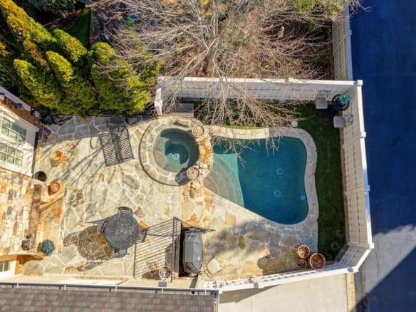 Pool & Hot Tub, indoor/outdoor Audio System, Finished Bar & Billiards Room, Home Theater with Stadium Seating as well as a Spacious large, Bright In-Law or Au-Pair Suite on Terrace Level with Full Kitchen and Large Living Room, Ensuite Bedroom with Separate Shower and Tub, and Separate Study/Office area. Master on Main plus a Guest Suite on the Main with a Welcoming Coffee Bar Entry. Enjoy Spectacular Outdoor Living with Walk-out from Main Level Family Room to your own Private Heated Salt-Water Plunge Pool and Hot Tub as well as a Relaxing Fireplace and Grill Area. A Classic Wood Paneled Study/Library opens off of the Beautiful Entry Foyer, and has a Hidden Access to the Primary Bedroom Suite on the Main. A Gorgeous Dining Room Flanks the other side of the Entry Foyer, with a Dramatic Vaulted Ceiling. There is an Additional Private Oversized Guest Suite with Kitchenette, Ensuite Bath and Walk-in Closet accessed via the Rear Foyer Staircase. Two additional Bedrooms, each with Ensuite Baths, share an open Office/Study area Located at top of Front Entry Staircase. As you enter the Terrace Level you will see the Wine Tasting Room, Wine Cellar and entrance to the Au-Pair Suite. The Au-Pair Suite Features it’s own Full Kitchen, open to it’s own Private Living area, Office, Large Bedroom, Walk-in Closet and Ensuite Bath with Separate Tub and Shower. Don’t miss the details in the Extraordinary Custom Rough-Hewn Bar with Concrete Counters, Wet Bar with Mirror Accent Backdrop and Glass Liquor Shelves, Ice Maker and two Refrigerator Drawers. The Home Theater with Stadium Seating is open to the Billiards Room and the Bar, and plenty of open space for Game or Card Tables, for Everyone to Enjoy the Fun! This Home is already equipped with a Generac Whole House Generator, and a Whole House Water Filtration System. They didn’t miss a thing in this Extraordinary Home. Perfect for a Growing Family, Multi-Generational Living, or Empty Nesters who Simply Desire to Live on One Level, but also enjoy having Room for Family and Friends when Needed, and anyone who Loves to Entertain with Ease. Peachtree Corners is Completely Connected by Sidewalks to Shopping, Restaurants, The Forum, Town Center, Jones Bridge Park on the Chattahoochee for fly fishing, and Simpson Elementary. Wesleyan School, Cornerstone Christian School, Perimeter School, and The Atlanta Athletic Club are Nearby. It is Simply Everything You Could Ask For In An Exquisite Home in the Best Location.